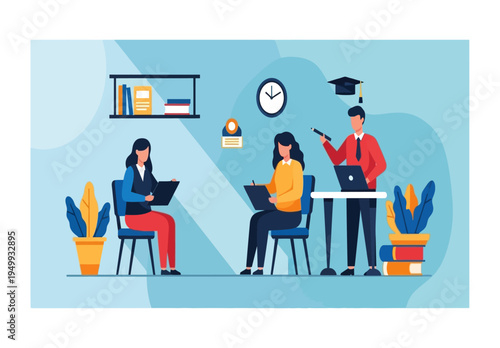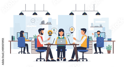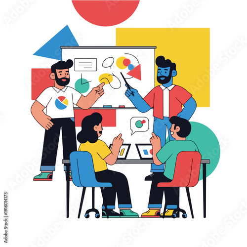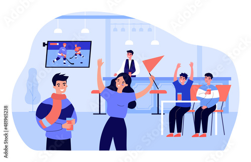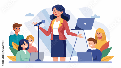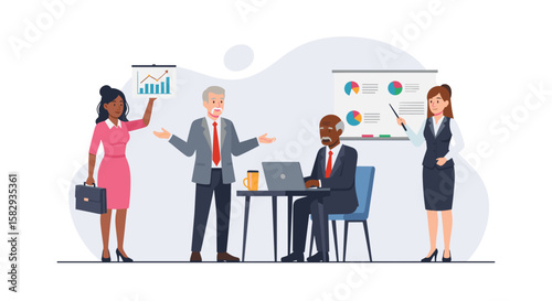 Výstava, veletržní scéna s propagátorem prodeje a postavami zákazníků, plochá vektorová izometrická ilustrace. Výstavní stánek, výstavní stánek, propagační vybavení.