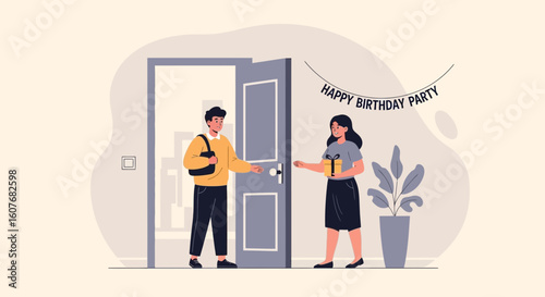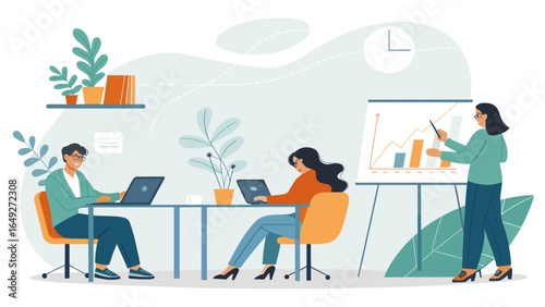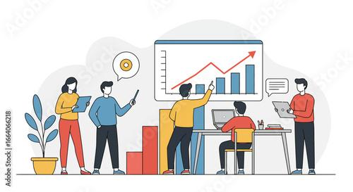 Výstava, veletržní scéna s propagátorem prodeje a postavami zákazníků, plochá vektorová izometrická ilustrace. Výstavní stánek, výstavní stánek, propagační vybavení.