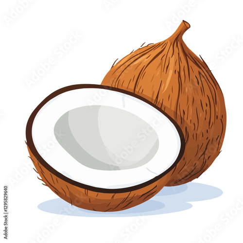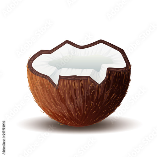 Exotické ovoce kokos a drop splash mléka realistické vektorové ikony. Designový prvek pro sladké výrobky izolovaných na bílém pozadí