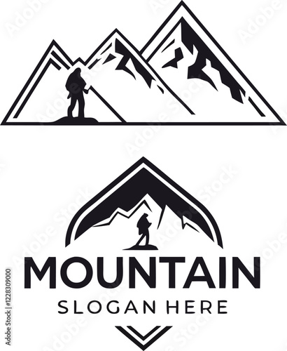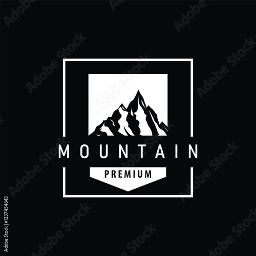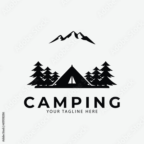 Extrémní dobrodružství a kempování v horském lese vintage label. Příroda camp grafická nálepka znak izolovaných na bílém pozadí. Cestovní expedice a horolezectví