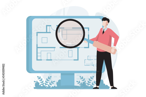 Oční kontrola. Lékař oftalmolog zkoumá lidské oko s lupou, ploché vektorové ilustrace. Test zraku, korekce zraku. Oftalmologie.