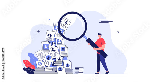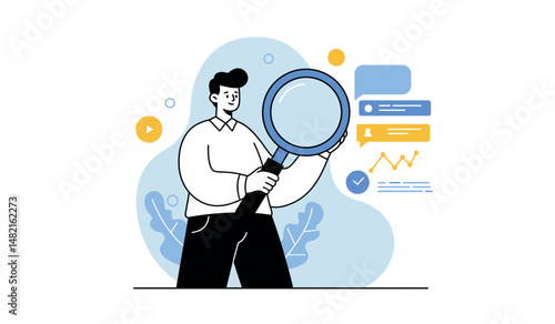 Oční kontrola. Lékař oftalmolog zkoumá lidské oko s lupou, ploché vektorové ilustrace. Test zraku, korekce zraku. Oftalmologie.