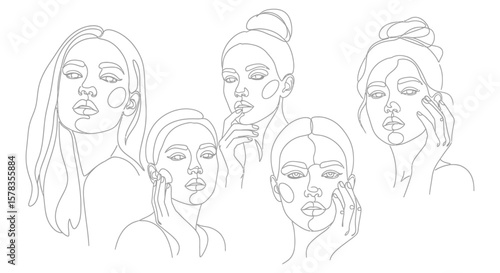 Kroky aplikace make-upu na obličej, vektorové ilustrace. Rutina péče o pleť obličeje, kosmetická procedura.