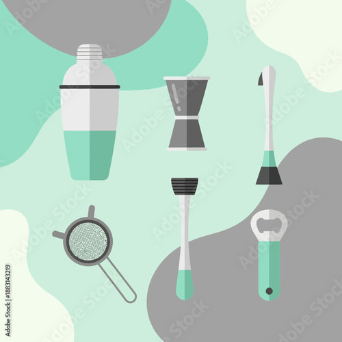 Masáž obličeje dodávky vektorové ilustrace. Různé kvaš jade škrabka, válečky a esence olej v láhvi pro kosmetické kosmetické služby