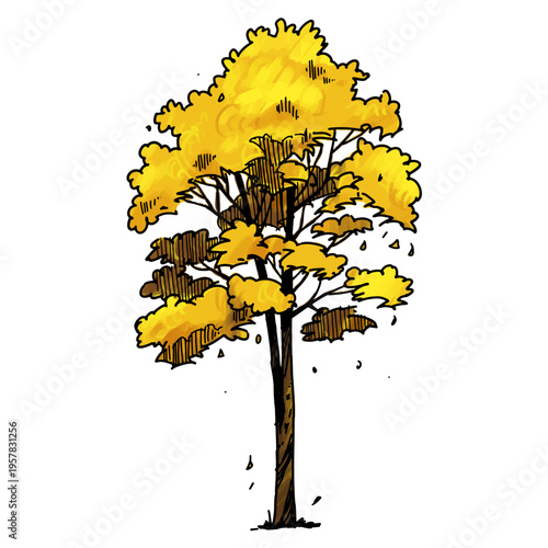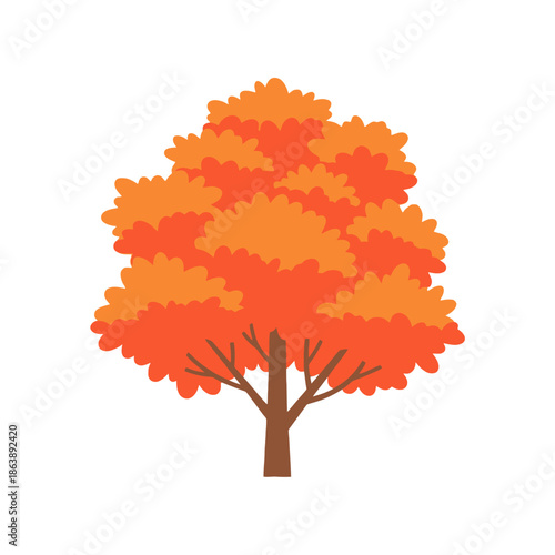 Podzim strom s oranžovou korunou vektorové ikony izolovaných na bílém pozadí