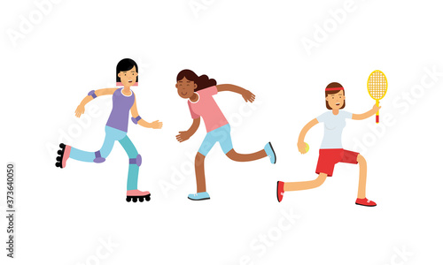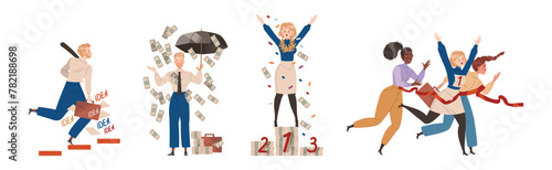 Padající mužské a ženské znakové sady, ploché vektorové ilustrace. Šokovaný pád lidí kvůli zakopnutí, uklouznutí, nehodě, zranění. Kluzký, nebezpečí, riziko.