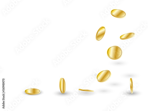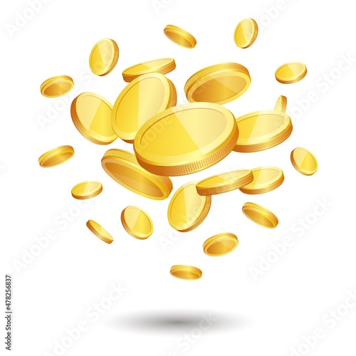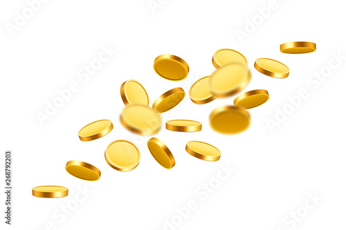 Padající zlaté mince, vektorové realistické ilustrace. Kasino jackpot, výhra, bohatství concept.
