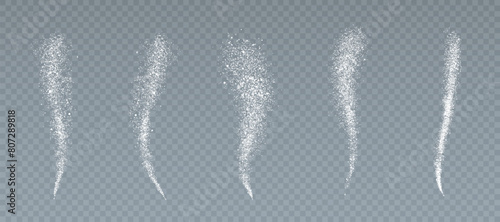 Padající bílé peří. Vektorové realistické ilustrace izolované na průhledném pozadí.