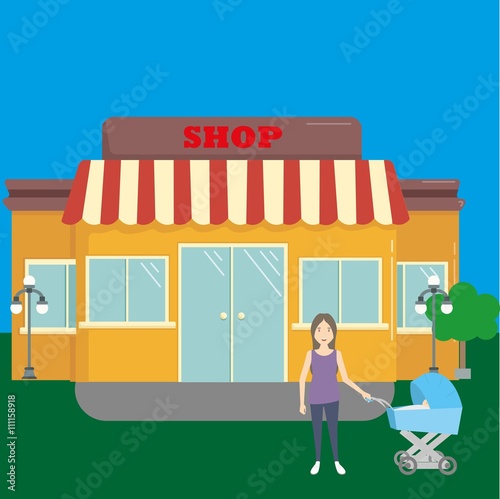 Rodinný pár na pikniku nebo bbq. Žena a muž jíst grilované klobásy, zatímco sedí u piknikového stolu. Vektorové ploché styl designu ilustrace.