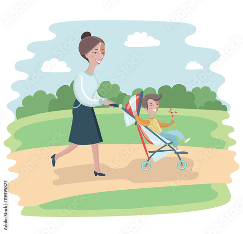Vektorová ilustrace otce, matka a dcera jdou na pláž. Rodinná dovolená na pláži koncept plochý styl designový prvek.