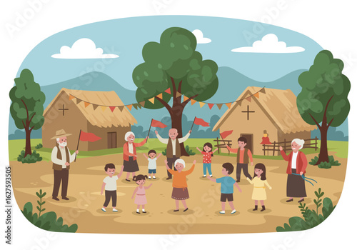 Rodinný tábor v lese vektorové ilustrace. Cartoon lidé odpočívají v horách během letní dovolené. Venkovní pikniková scéna. Rekreace rodičů a dětí u táboráku. Turistika Cestování Krajina