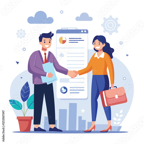 Vektor muž a žena rodinný pár na pasové kontrole nebo odbavovací přepážce na letišti. Dvojice turistů se zavazadly v terminálu letadla jedoucí na letní dovolenou nebo cestu Kreslená ilustrace