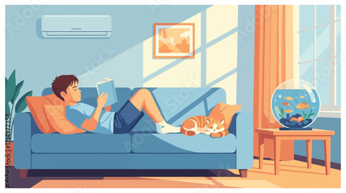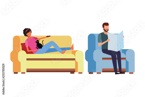 Rodinný pár ležící na pohovce a čtení knih. Otevřete knihu na stole. Ilustrace konceptu znalostí. Volný čas doma. Vektor web design šablony. Vstupní stránka webové stránky ilustrace.
