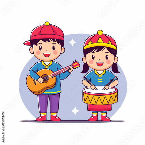 Rodina velikonoční oslava scéna set, plochý vektor izolované ilustrace. Šťastná máma, táta a děti na sobě králičí uši čelenka s králíkem, zdobené velikonoční vajíčka, dort, košík.