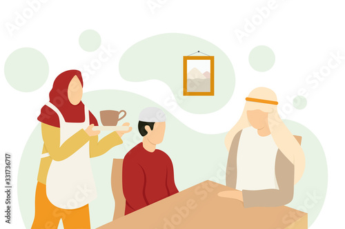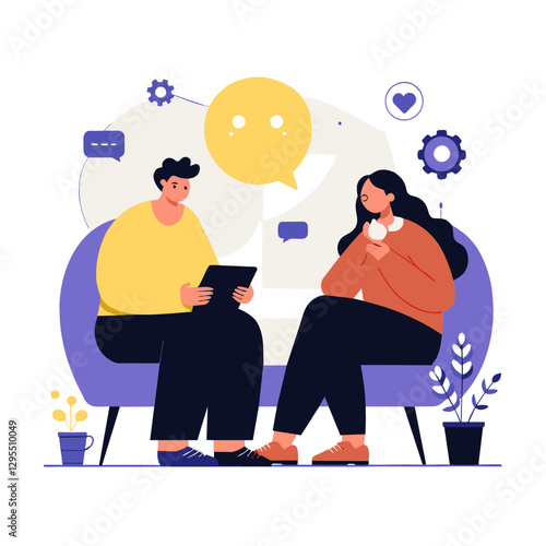 Prarodiče chatují online se svými dospělými dětmi a vnukem, ploché vektorové ilustrace. Online chat, rychlé zasílání zpráv. Rodinná internetová komunikace.