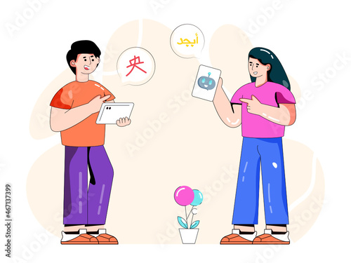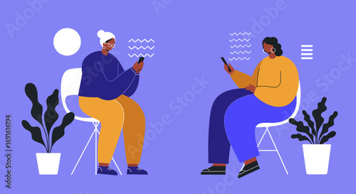 Prarodiče chatují online se svými dospělými dětmi a vnukem, ploché vektorové ilustrace. Online chat, rychlé zasílání zpráv. Rodinná internetová komunikace.