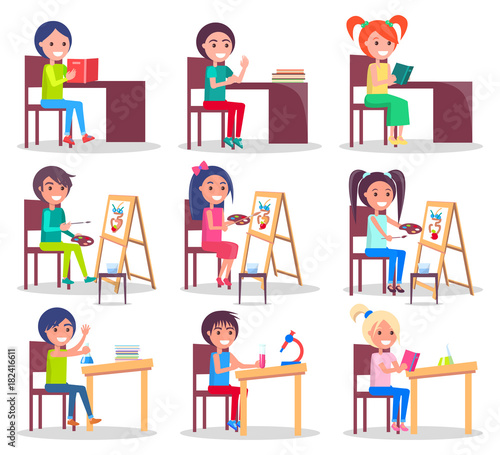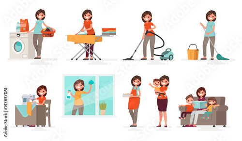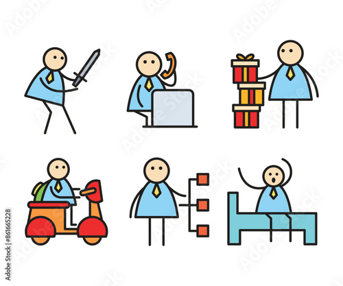 Vektorová ilustrace šťastných rodinných kreslených postaviček prarodičů, rodičů a jejich dětí. Rodinné symboly, ikony izolované na bílém pozadí. Plochý design.