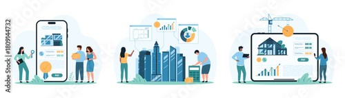 Rodina s dítětem imigrační scény vektorové ilustrace. Uprchlíci, nucené vysídlení nebo bezpečnost na palubě cestovní koncepce. Stáhnout obrázek Father, mother and kid with suitcase over city