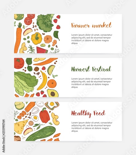 Farm fresh food online vektorová webová šablona, design vstupní stránky pro vývoj webových stránek a mobilních stránek. Objednat čerstvé bio ovoce, zelenina on-line, zdravé dodávky potravin, potraviny.