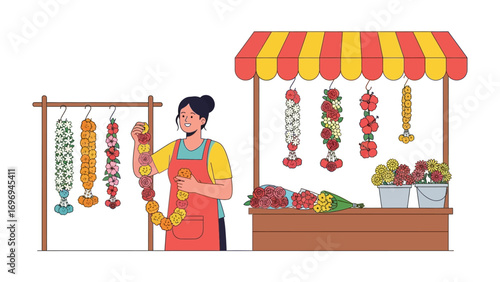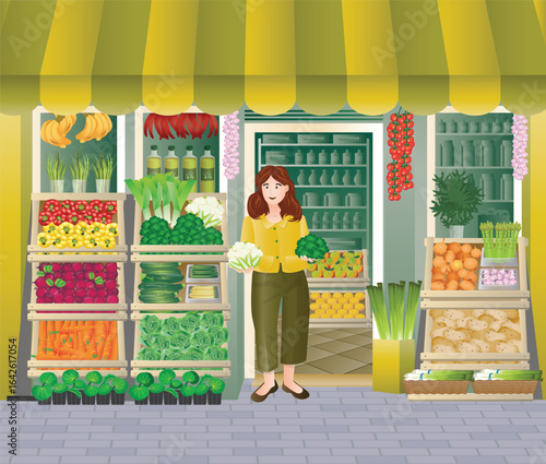 Farmář na místním trhu nabízí čerstvou zeleninu a potraviny ve stánku s pouličními potravinami. Farma tržiště a obchod. Koncept ilustrace. Vektor web design šablony. Vstupní stránka webové stránky ilustrace.