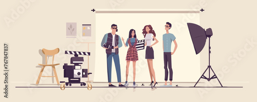 Módní stylista pracuje se zákazníkem v obchodě ilustrace. Švadlena a návrhářka pomáhá mladému páru vybrat si nový módní outfit v showroomu