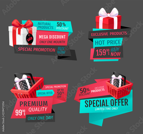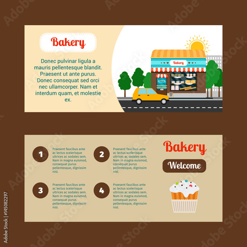 Vektorové sada fast food vozík horizontální bannery. Pekárna, káva, pivo a ovoce vozík izometrické ikony, místo pro text.
