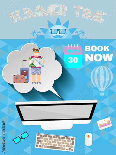 Fast food vektorový plochý styl designu ilustrace. Notebook s markýzou, cheeseburger, pizza, kobliha, kečup a hořčice láhve, cola, nádobí. Koncept rychlého občerstvení online pro webový banner, webovou stránku atd