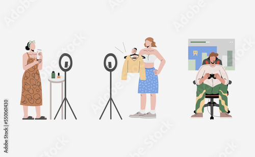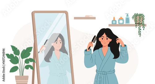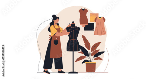 Tlustá žena nakupování v obchodě kreslený vektor. Tělo pozitivní a móda pro ženský koncept s nadváhou. Zákazník a prodejce v obchodě boutique