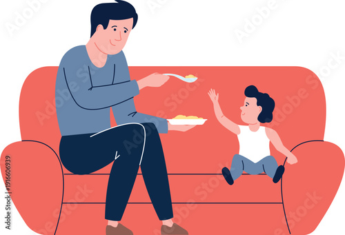 Otec a dcera čtení spolu na domácí pohovce vektorové ikony izolovaných na bílém pozadí
