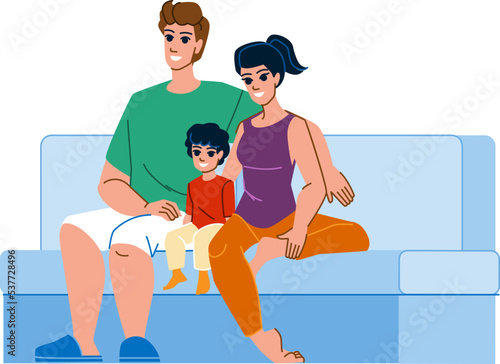 Otec a matka uklidňující péče pláč smutná holčička Dcera vektorové ilustrace. Rodiče podporující nešťastný zdůraznil dítě sedí na domácí pohovce izolovaných na bílém pozadí
