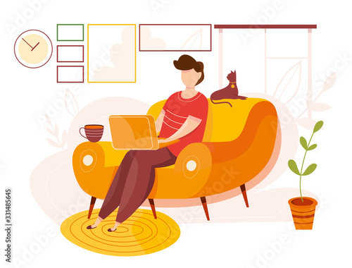 Otec krmení novorozené dítě s balené mléko vektoru. Kreslený muž drží dítě dítě sedí na pohovce doma ilustrace. Otcovství a otcovství. Mladý táta tráví čas s dítětem
