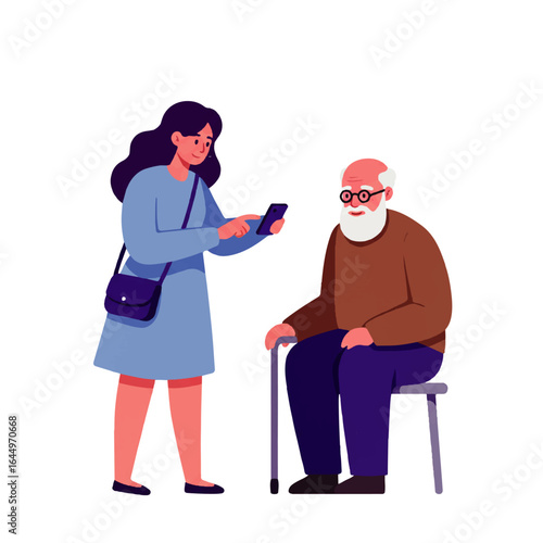 Plochý kreslený otec mluví malý chlapec syn vektorové ilustrace izolovaných na bílém pozadí. Pěkný rozhovor a přátelský rozhovor s dětmi koncept
