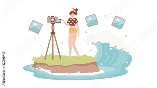 Malířka na stojanu. Kreslení krajiny v poznámkovém bloku barevnými tužkami. Výtvarné studio koncept ilustrace. Vektor web design šablony. Vstupní stránka webové stránky ilustrace.