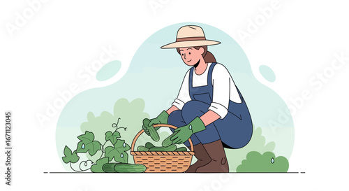 Žena asijské zemědělec sbírání listů zeleného čaje vektorové ikony izolované pozadí.