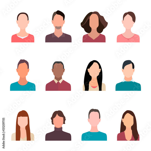 Žena avatar ikony vektorové sady. Lidé postavy v plochém stylu. Konstrukční prvky izolované na pozadí. Tváře s různými styly a národnostmi.