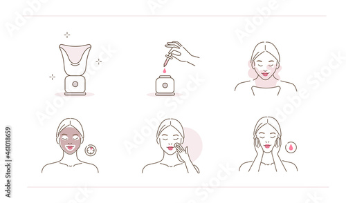 Ženské tělo bolestivé zóny set, vektorové ilustrace. Nemocný pacient části těla hlavy krku nohy rameno loket koleno prsa s červenou bolest tečky. Migréna, bolesti hlavy, bolesti zad, bolesti žaludku, fyzické zranění.