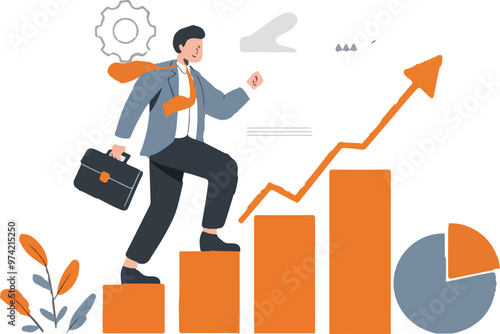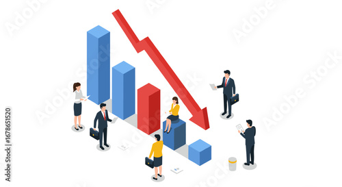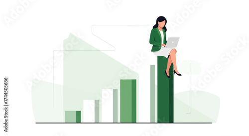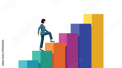 Vedoucí ženského šéfa stojící na vrcholu sloupcového grafu a mužský zaměstnanec padající z něj, ploché vektorové ilustrace. Feminismus koncept.