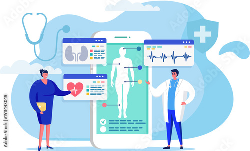 Ženské postavy meditují v lotosové pozici, užívají léky, sportují, ploché vektorové ilustrace. Úleva od stresu, zdravotní péče. Duševní rovnováha, harmonie. Jóga, meditace, pohoda a fitness.