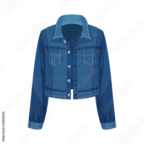 Žena oříznuté džínové bundy vektorové ikony izolovaných na bílém pozadí.