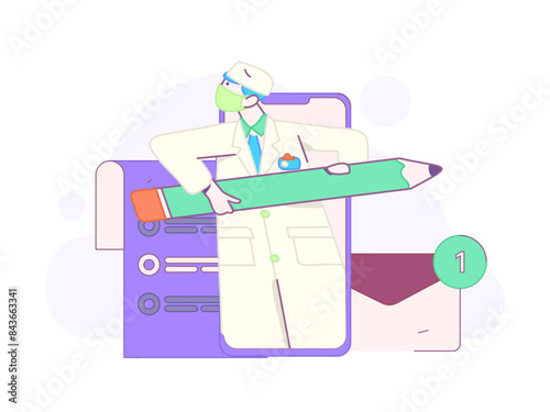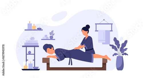 Lékařka dělá břišní ultrazvukové vyšetření pacientce ležící na lékařské posteli, plochá vektorová ilustrace. Ultrazvukové lékařské vyšetření. Gastroenterologie. Medicína a zdravotní péče.