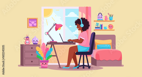 Žena módní návrhářka vytvořit novou kolekci šatů. Žena šití ručně vyráběné oblečení. Koncept ilustrace. Vektor web design šablony. Vstupní stránka webové stránky ilustrace.
