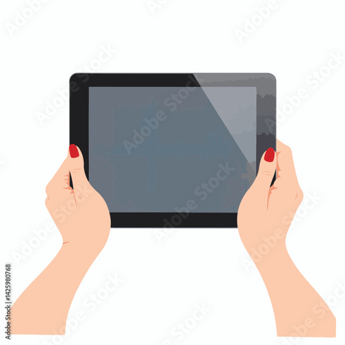 Ženské ruce drží smartphone, ploché vektorové ilustrace. Ruce interakci s moderním mobilním telefonem horizontální maketa.