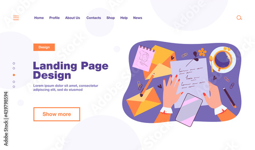 Fotografka fotografuje doma. Fotografická kamera na stativu. Interiér pokoje. Koncept ilustrace. Vektor web design šablony. Vstupní stránka webové stránky ilustrace.