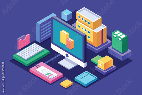 Vývojový diagram hostování souborů, vektorové ilustrace. Izometrické serverové regály, uživatelská složka, počítač, e-mail, cloudové úložiště. Internetová hostingová služba. Platforma pro sdílení souborů.