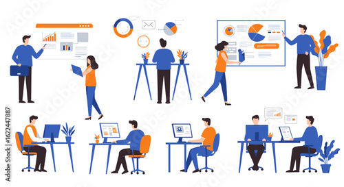 Obchodní lidé, kteří trpí finanční ztráty, vektorové ploché ilustrace izolovaných na bílém pozadí. Krize úspor a půjček, bankrot společnosti, finanční krize, krach akciového trhu, hospodářská recese