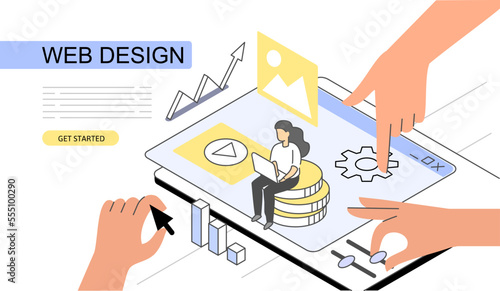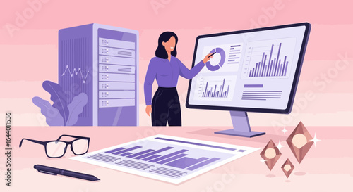 Investice do akcií třídy, školení, ploché vektorové izometrické ilustrace. Mobilní učení. Seminář. Online finanční investice, koncept kurzů obchodování s akciemi.