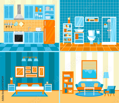 Hasičský záchranný tým hašení hořícího obytného domu. Hasiči pomocí vody firehose, dlouhý žebřík k boji s planoucími plameny a kouřem vektorové ilustrace