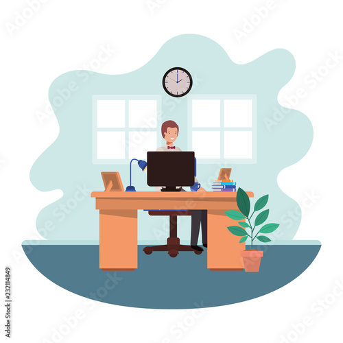 Obchod s rybami, ploché vektorové ilustrace. Prodavačka stojící u pultu lednice s čerstvými a konzervovanými rybami. Obchod s rybami, trh. Supermarket, obchod s potravinami seafood sekce, oddělení.