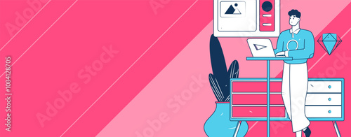 Rybář s rybářským prutem sedící v nafukovacím gumovém člunu, vektorové ilustrace. Rybářský sport, hobby, venkovní letní aktivita, koncept volného času pro webový banner, webovou stránku atd.