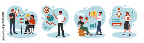 Posilovna. Mladý muž kulturista dělá ruční cvičení s činkami, ploché vektorové ilustrace. Rameno cvičení pro biceps a triceps, kulturistika. Sport a zdravý životní styl.